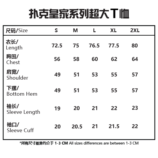 Royalty Series Oversized T-Shirt Color & Size (扑克皇家系列超大T恤颜色与尺寸)